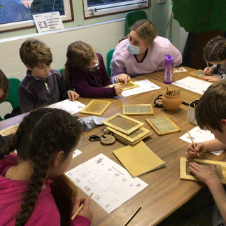 Wax Stippling - They learnt how Romans used a wax tablet and stippling tool to write things down. The children had a go at using the wax to answer Roman Numeral maths questions.